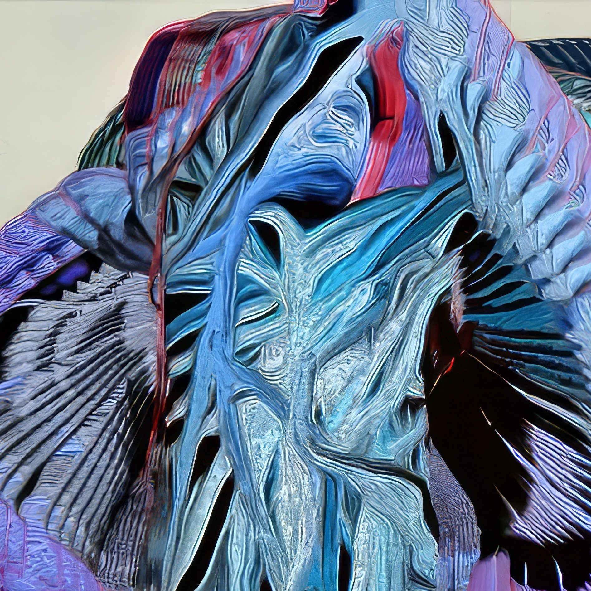 L’image que vous voyez devant vous montre quelque chose qui a nécessité une physiothérapie intensive pour être maîtrisé. Pour me déplacer vers le sol, je dois appuyer sur ma prothèse et sentir la résistance du fluide hydraulique dans l’articulation du genou, en faisant attention de ne pas accrocher mon orteil, ce qui déclencherait le mouvement et ferait fléchir mon genou. Les images composites oscillantes derrière moi capturent également le mouvement de ma jambe réelle qui se déplace du centre de mon pied vers mes orteils afin de maintenir un équilibre délicat. J’aime le fait que laisser une trace de quelque chose que j’essaierais normalement de cacher en public, cette oscillation et cette concentration pour me diriger vers le sol, aient en fait rendu ma silhouette plus organique et semblable à une fleur.